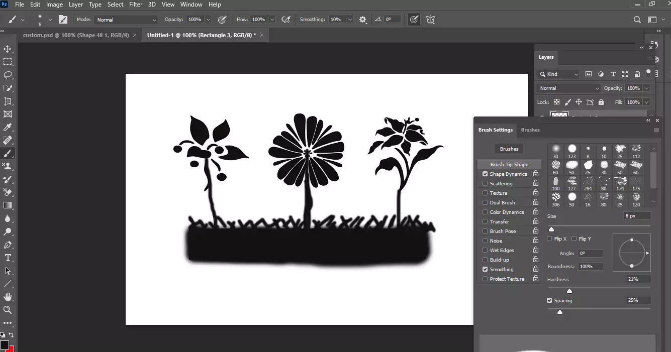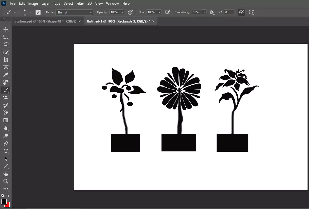 Step 2: Creating Different Types of Flowers By Using the Custom Shapes Photoshop | Free Custom Shapes